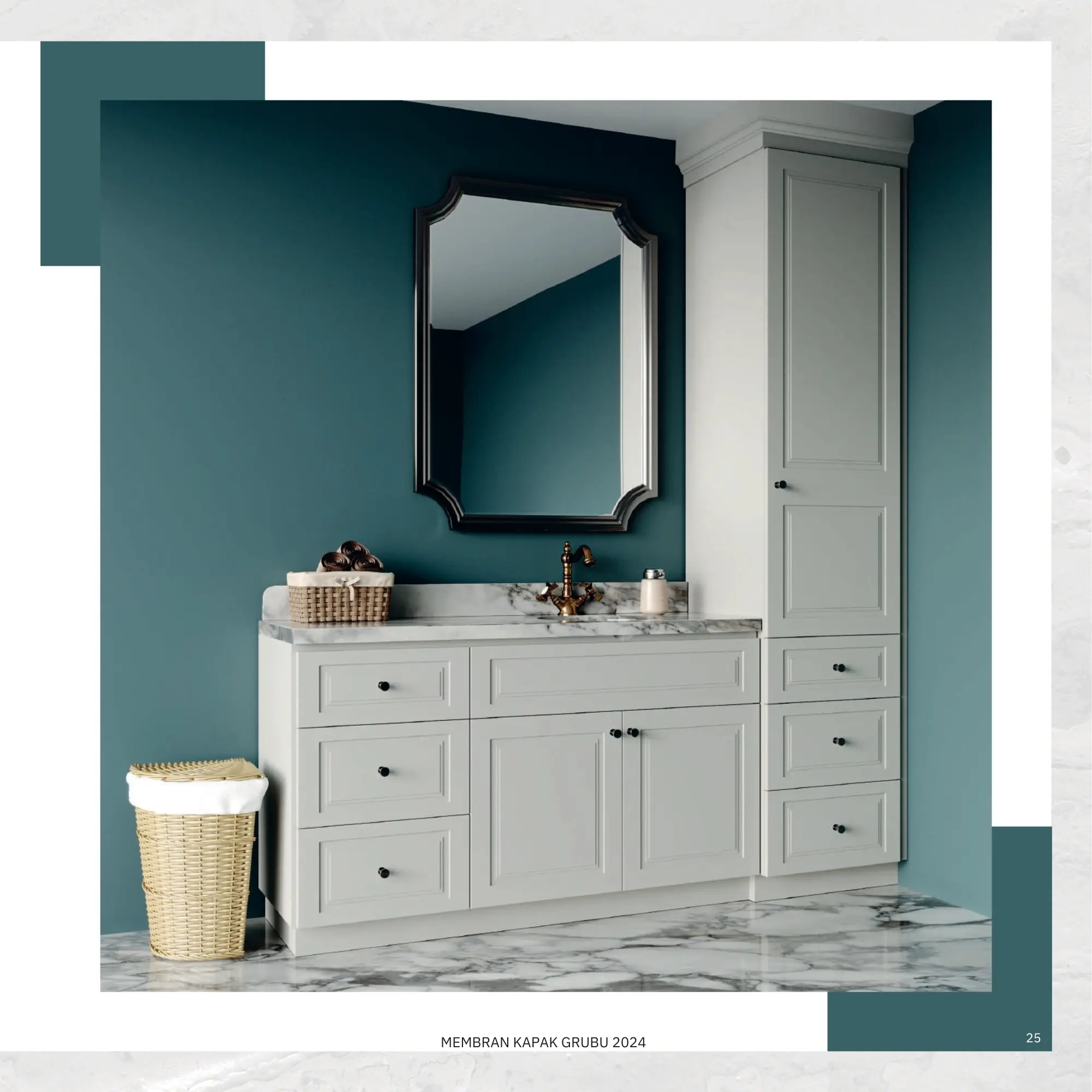 Banyolar evin en nemli alanlarıdır. Bu yüzden banyo dolabı imalatında sadece görselliği değil, kullanılan malzemenin ömrünü de önemsiyoruz. V serisi kapak modellerimizle banyonuza modern bir hava katarken, fonksiyonel iç dizaynla depolama alanınızı artırıyoruz.